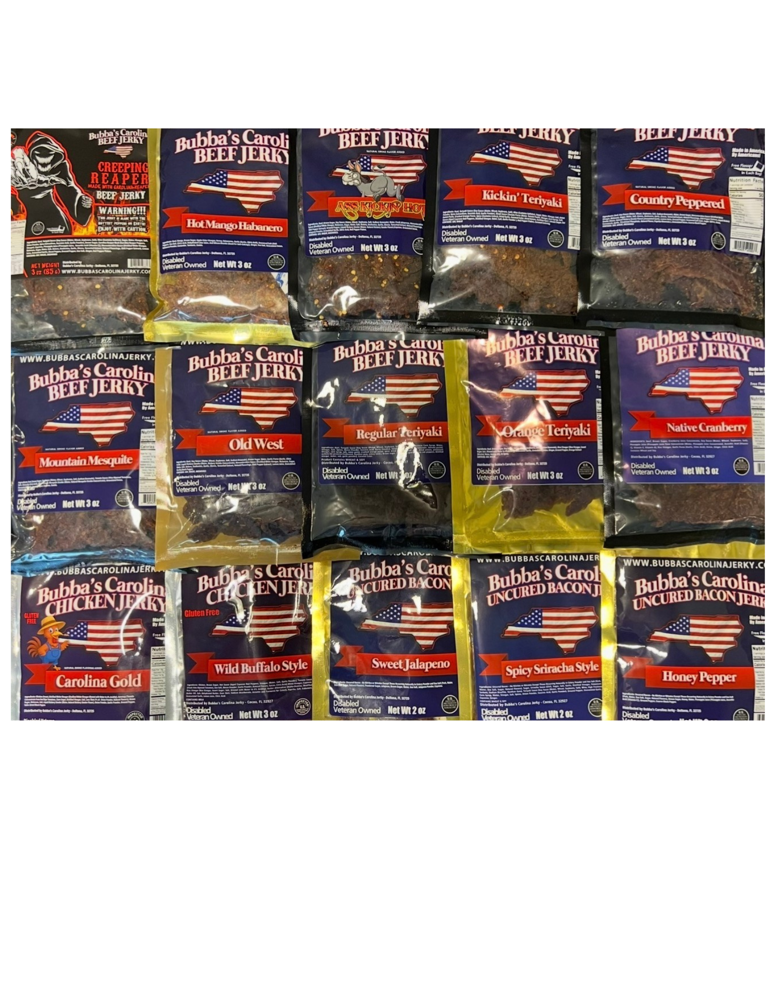 No matter who the lucky recipient is, this gift is guaranteed to impress! Included is one bag of each of our 15 mouthwatering flavors, offering an unforgettable taste experience. Whether they're a seasoned jerky enthusiast or a first-time taster, this thoughtful gift will take them on a flavorful journey they won’t soon forget. This is truly the ULTIMATE gift for any Jerky Lover!